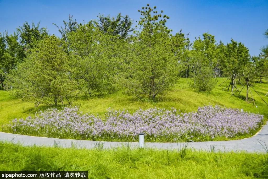 园内有11个绿化分区,丽红元宝枫、大叶黄杨篱、大花萱草、银红槭、白蜡、栾树等数十种树木遍植。