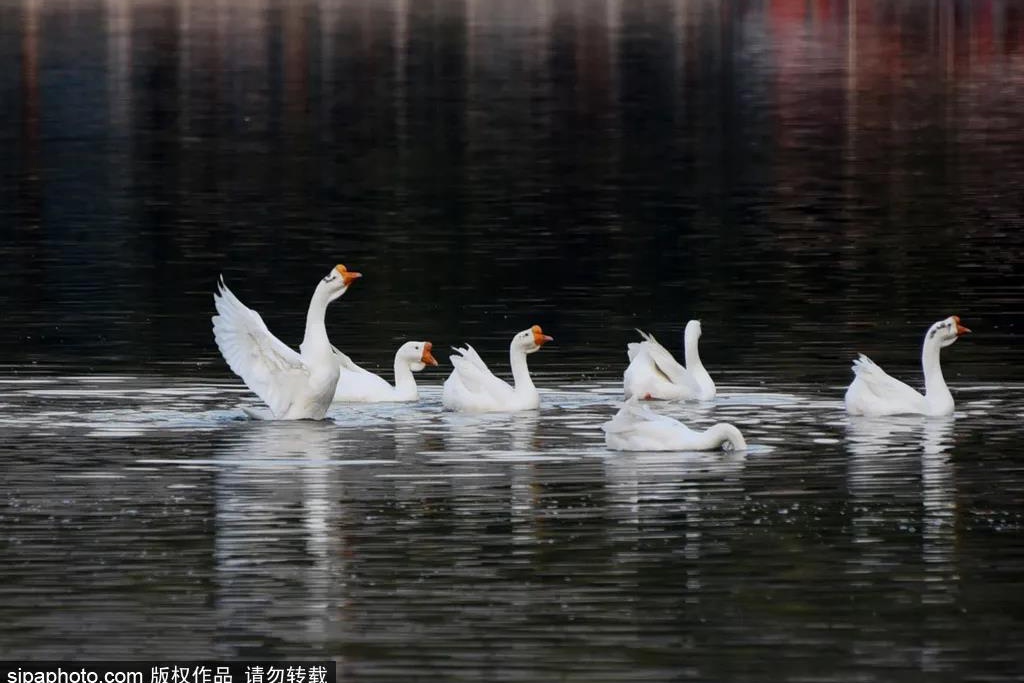 白鸭、白鹅们自在地玩耍,似乎也不怕游人,带孩子来玩是一个不错的选择。