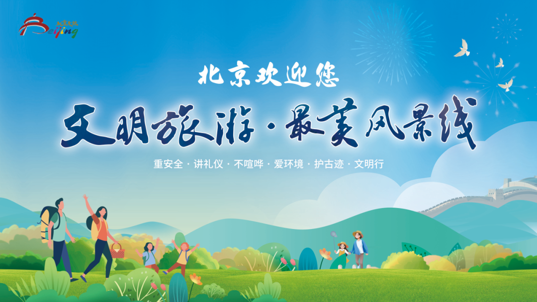 “漫步北京,点亮旅程,文明有我,礼仪同行”。我们倡议:广大市民和游客朋友争做文明旅游的示范者!增强生态文明意识,保护生态环境,维护环境卫生。遵守公共秩序,不拥挤不争抢,爱护文物古迹,爱惜公共设施,践行“光盘行动”,避免餐饮浪费。做好旅游生活垃圾分类,自觉带走帐篷露营活动产生的垃圾。低碳节约、绿色出行,优先选择公共交通工具。