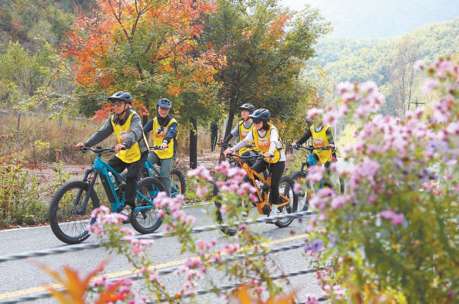 村庄道路两侧,格桑花、菊花等也迎来盛放期。骑手们在斑斓秋色中驭风而行,在越野挑战中释放激情,还能欣赏秋日彩叶的绚烂。“这是我第一次来喇叭沟门,骑行在林间小道上,呼吸着新鲜空气,感觉所有的压力都消失了。我跟朋友约好了,下次都要带家人一起来。”骑行爱好者李女士说。