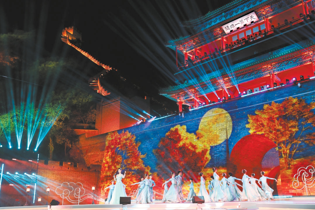 在世园国际旅游度假区的《梦华·长城》情景演艺剧场,“梦华圆月”景观同样引人入胜。月光下,将士思乡之情与巍峨长城交相辉映,引发观众深深共鸣。10月1日以来,该演出已接待游客近万人次,平均每场接待600余人,成为假期夜游的又一亮点。