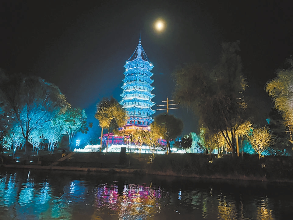 长城脚下,延庆城区的“妫河映月”为赏月增添灵动之笔。在妫水河上的夏都码头,环河实景演出《妫河夜画》巧妙运用水幕投影、全息成像等科技手段,营造出“月在枝间藏,影在水中摇”的诗意境界。天上明月、水中月影与船上的“大月亮”造型相映成趣,游客既可感受船行月移的动态之美,还可参与兔子灯手工制作、妫河放荷花灯祈福等活动,沉浸式体验月夜下的浪漫。