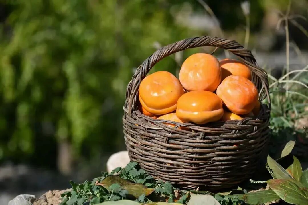 磨盘柿树最是惹眼沉甸甸的橙红果实缀满枝头像挂满了小灯笼,阳光透过叶片洒在柿子上连果皮都泛着温润的光泽。