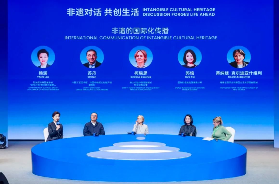 围绕“非遗的国际化传播”议题,中国工艺美术馆、中国非物质文化遗产馆副馆长苏丹,意大利驻华使馆副馆长、特命全权公使柯瑞思,国际知名高定服装设计师郭培,格鲁吉亚第比利斯国立艺术学院副院长兼展览策展人蒂纳廷·克尔迪亚什维利展开对话。嘉宾们指出,非遗传播需超越语言翻译,深入文化语境转译,通过双向调研推动内容共创,在保持文化内核完整的同时实现有效对话,让非遗成为“活在当下的文化生产力”。围绕“非遗的可持续发展”议题,便宜坊烤鸭集团董事长司可,联合国教科文组织世界遗产保护专家、北京中轴线申遗大使唐华德,匈牙利联合国教科文组织全国委员会秘书长加博尔·索奥斯,国家级非物质文化遗产“北京面人郎”市级代表性传承人郎佳子彧,从企业运营、区域生态、教育科技、青年传承等多维度展开探讨。嘉宾们认为,当前非遗发展面临人才断层与社会认知偏差等挑战,需通过教育引领、科技赋能与政策支持,构建“技艺传承—内容创新—市场接纳”的良性生态,推动非遗在现代社会中持续传承。