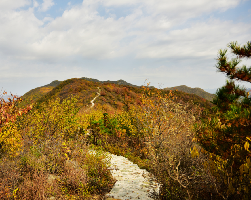 汗包山是昌平“徒步赏秋”的好去处,蜿蜒石阶通向山顶,超适合秋日登高。深秋时节,山杨、黄栌等缀满金黄叶片,与深绿松柏交织出层次丰富的秋景。登顶后十三陵水库波光粼粼,尽收眼底。可远观明十三陵,秋景与古迹同框,格外震撼。适合市民登山,既能锻炼身体,又能就近欣赏秋日风光。