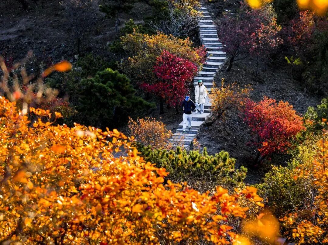昌平赏秋想避开人潮?大杨山国家森林公园简直太适合徒步爱好者啦!8公里原始森林栈道穿梭林间,300年古油松环绕身旁,生态氛围很浓。沿“杨山主峰步道”向上,脚下是自然野趣,抬头可见红叶铺满山野,像染红的朝霞洒落,在湛蓝天空映衬下,把秋日壮阔拉满。