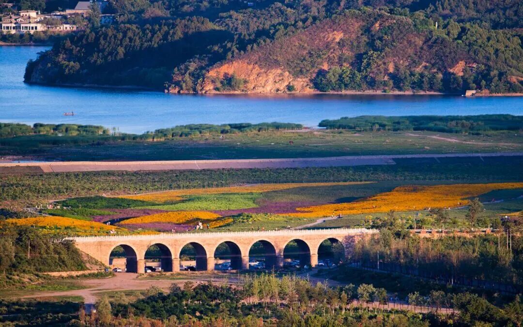 昌平秋日的 “网红打卡地”,初秋有波斯菊、格桑花成片绽放,粉、黄、橙三色交织成花海;深秋虽花朵渐谢,但残留的花穗与周边的红叶、芦苇相映成趣,夕阳下的七孔桥倒映在花海旁的湖水中,随手一拍就是“明信片”的既视感。