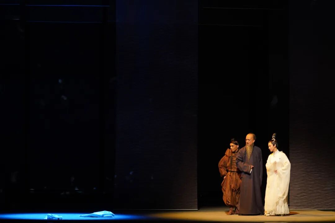 在舞美设计上,以水墨宣纸为基调,巧妙运用21道类宣纸幕,结合多媒体与灯光营造诗意意境,呈现出虚实交织、动静相宜、明暗相映的浪漫舞台效果,使舞台展现出浪漫主义色彩与缭绕市井乡情的现实感相融合的诗化京剧特色。