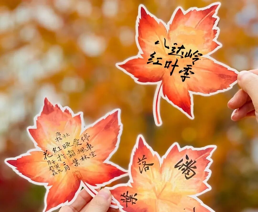 红叶祈福墙一定不能错过,路过创意市集,领取一张明信片,在红叶上写下祝福语。