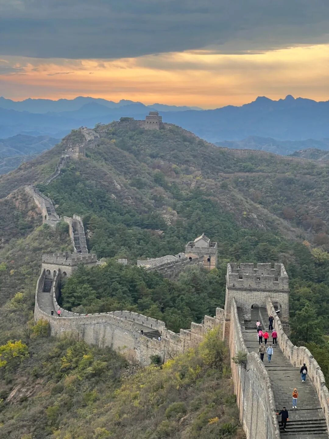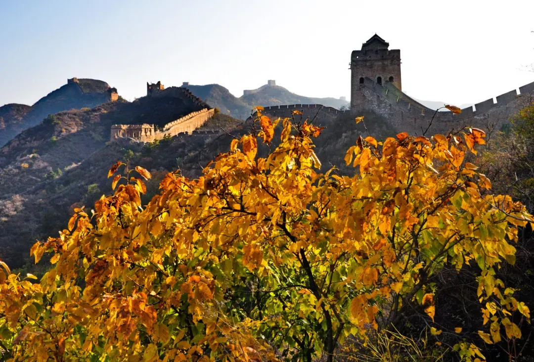 午后的光线变得格外柔和,为长城和红叶镀上一层温暖的金边,是摄影爱好者梦寐以求的“黄金时刻”。