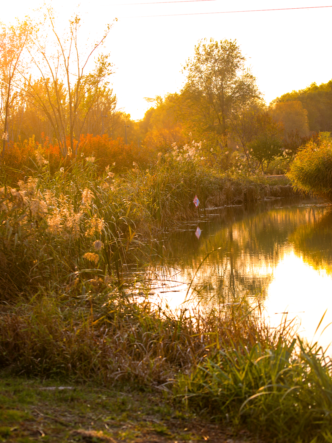 傍晚时分,落日余晖洒在芦苇和河面上波光粼粼,美不胜收,沿着运河步道漫行,仿佛踏入《诗经》里的古老意境中,微风拂过,成片的芦苇随风摇曳,是通州大运河河畔不得不看的风行芦苇景观。