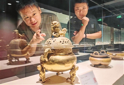 步入“炉天下宣德炉艺术博物馆”,从不同时期的珍品炉,到运用“明清宣德炉复原技术”制作的复刻品,游客仿佛置身于一个宣德炉的专属世界。宣德炉设计沿用宋代瓷器美学,且运用中国传统铜器冶炼铸造之技法(失蜡法),又因其形制优美、包浆迷人、款识大雅,而备受历代文人雅士的喜爱和追捧,更成为文房必备雅器。“我们这里不需要预约,只要来了就能参观,我负责讲解。有不少外地朋友慕名而来。为了让走进这里的人们对宣德炉有全面的了解,我们馆内设有宣德炉展示、宣德炉研究(鉴定)、明清宣德炉复原、宣德炉文化等板块。我在讲解的过程中,会针对展品本身的特色以及相关的历史背景展开讲述。”该馆馆长、宣德炉制作技艺代表性传承人王斌介绍。