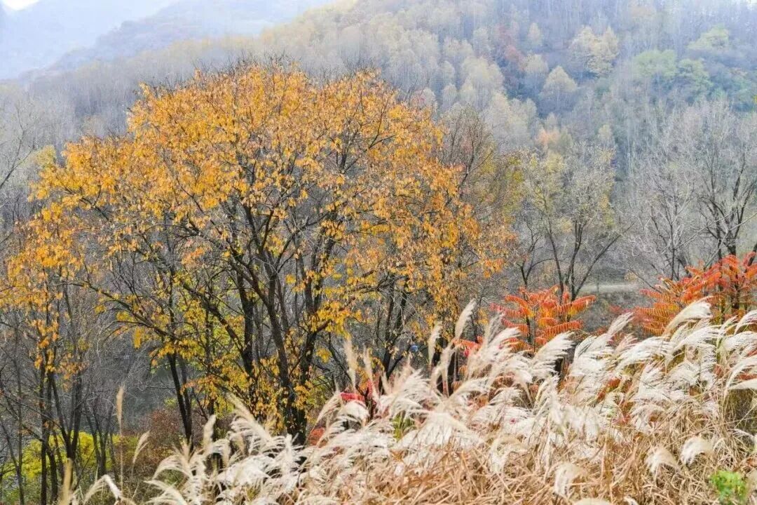 玉渡山山林茂密、空气清新,景色原始古朴,一步步走进去,就仿佛逐渐回到最原本的自然世界。11月中旬,玉渡山还留有秋日的氛围,千米海拔之上,高山草甸褪去葱茏,金褐与深绿交织铺展,宛如大地织就的厚重绒毯。