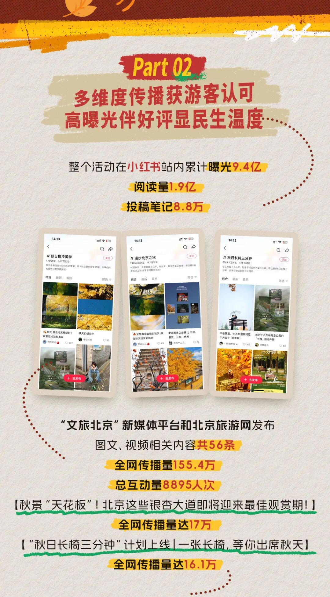 曝光9.4亿,浏览量1.9亿,投稿笔记8.8万 ——“秋日长椅三分钟”计划成金秋文旅现象级出圈事件。
