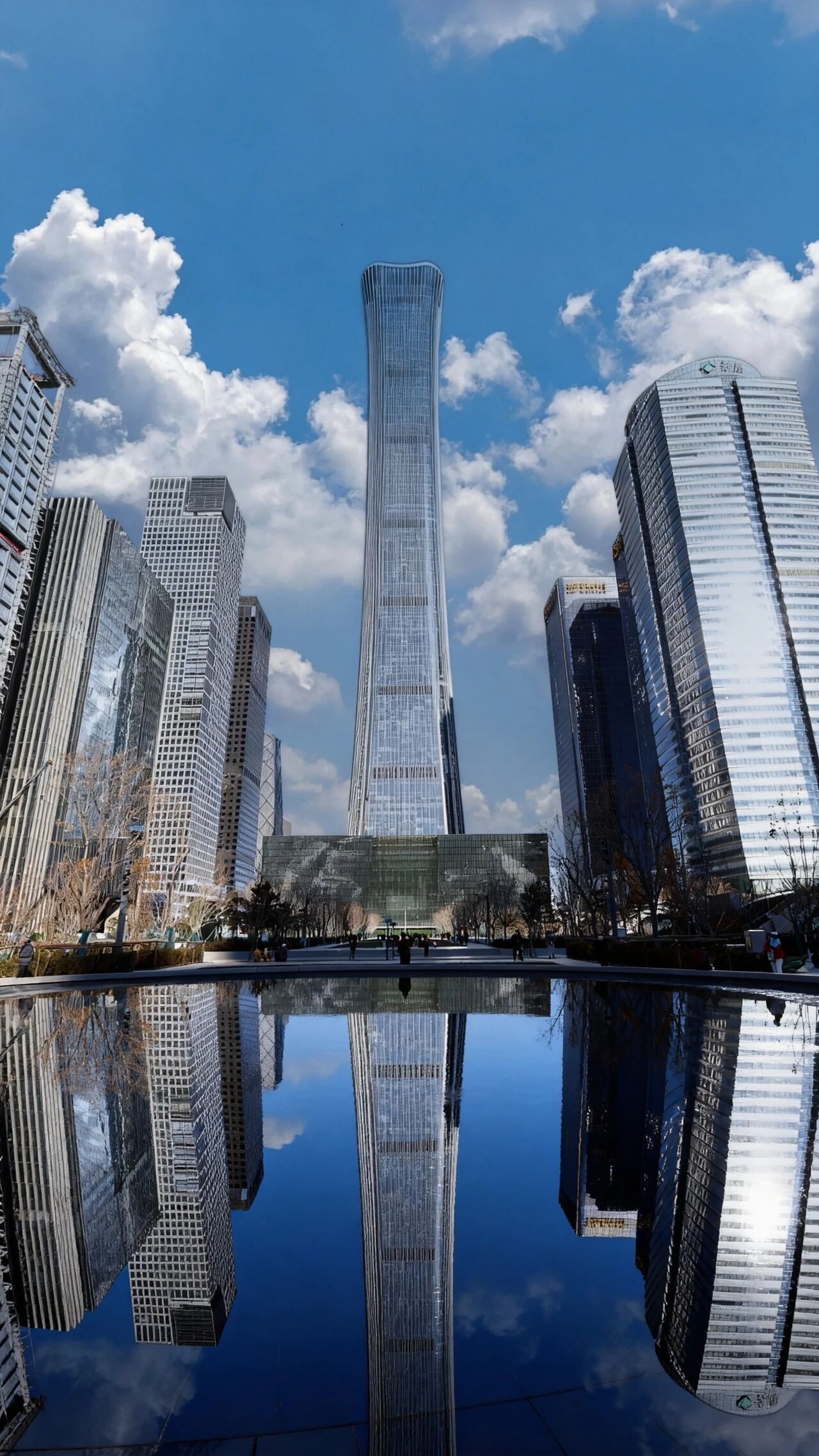 倒映出摩天大楼的壮美身影