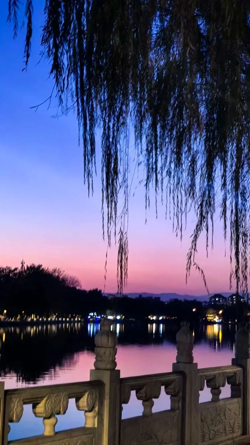 温柔的垂柳、温暖的灯火
