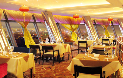 位于中央电视塔221米的高空旋转餐厅