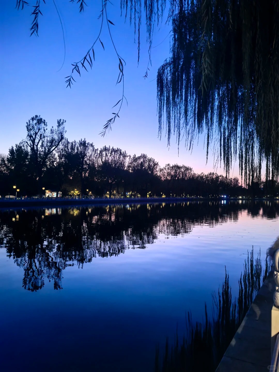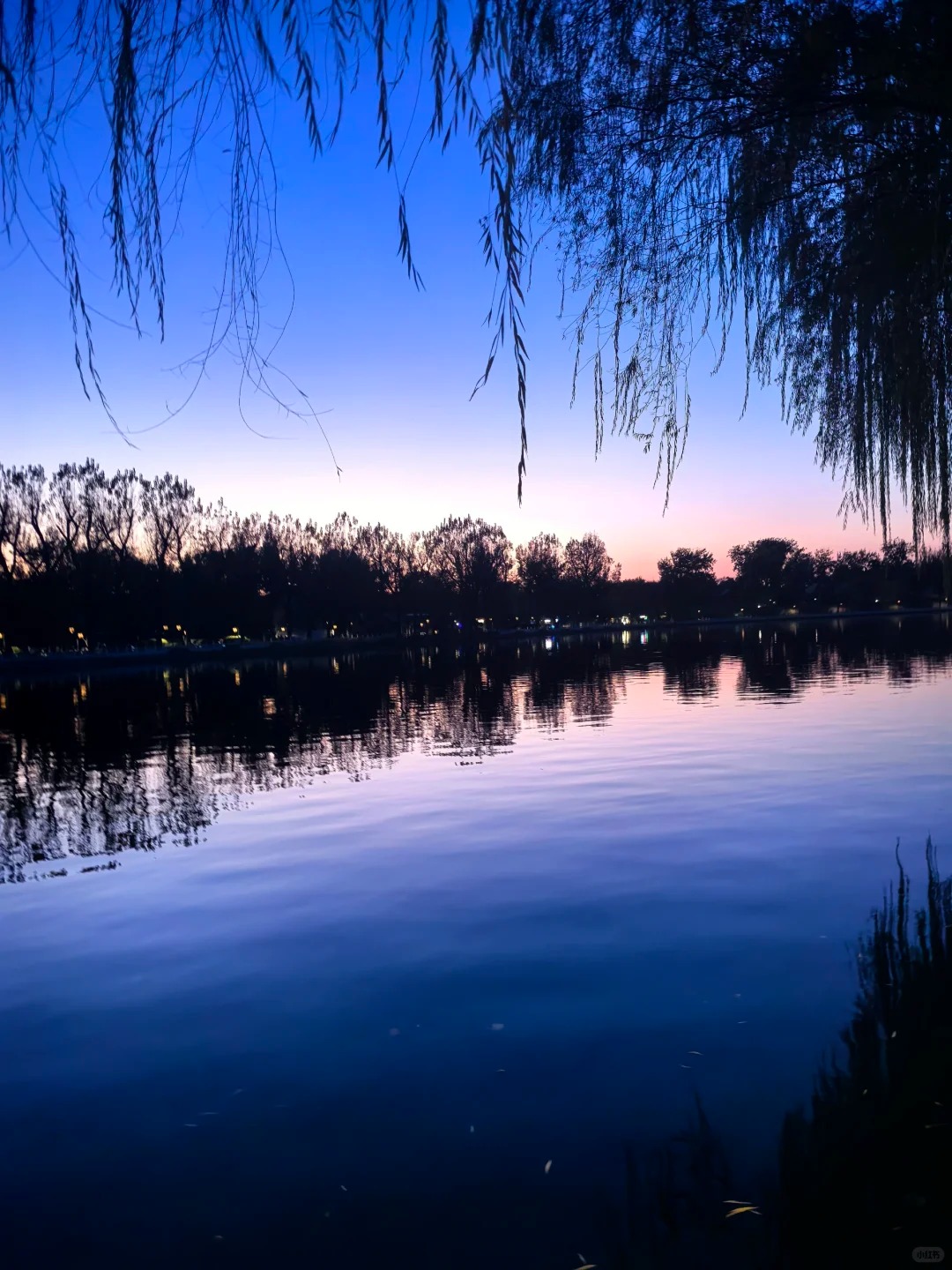 湖面倒影的“蓝调时刻”