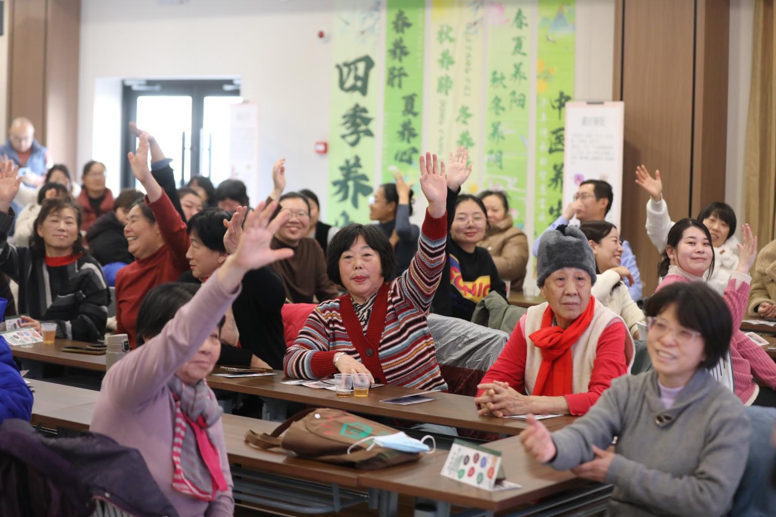 在当天上午的活动中,社区居民们自己亲手抓取药材,制作香囊、茶包、艾草锤这些可以随身应用的小物品,举行的养生课程也丰富了大家日常生活中的健康知识。