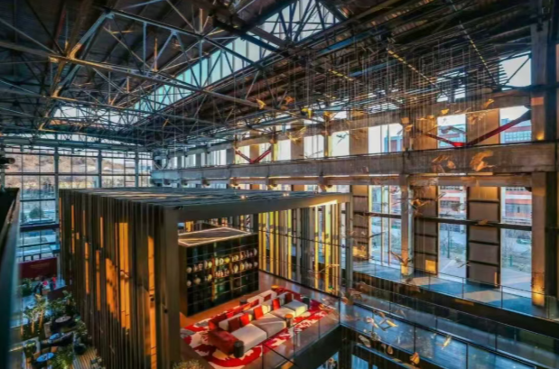 北京首钢园香格里拉位于首钢园内,呈现出独特的山-水-工业遗存复合景观风貌。它在原首钢电力厂建筑基础上进行全方位改造。项目改造在保留特征鲜明的工业文化风貌与历史传承的同时,以现代化的风格并秉持绿色可持续理念,将原有基地的工业感和尺度感完整地展现,是建筑美学与现代工业的巧妙融合。