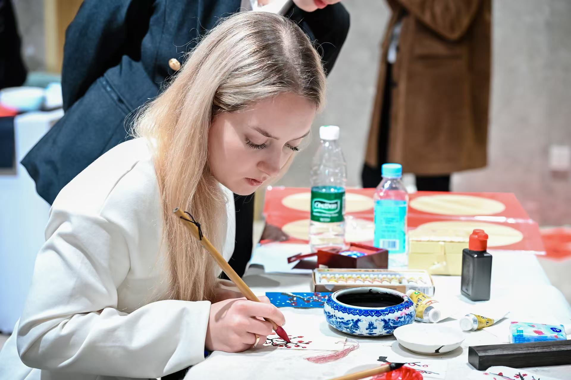 在非遗工坊区域,现场嘉宾兴致盎然地参与剪纸、书法、点梅、非遗饰品制作等互动体验,亲手制作并品尝饺子、汤圆等冬至节令食品,在“围炉煮茶”的温馨氛围中细细品味中国岁时节俗的生活智慧。