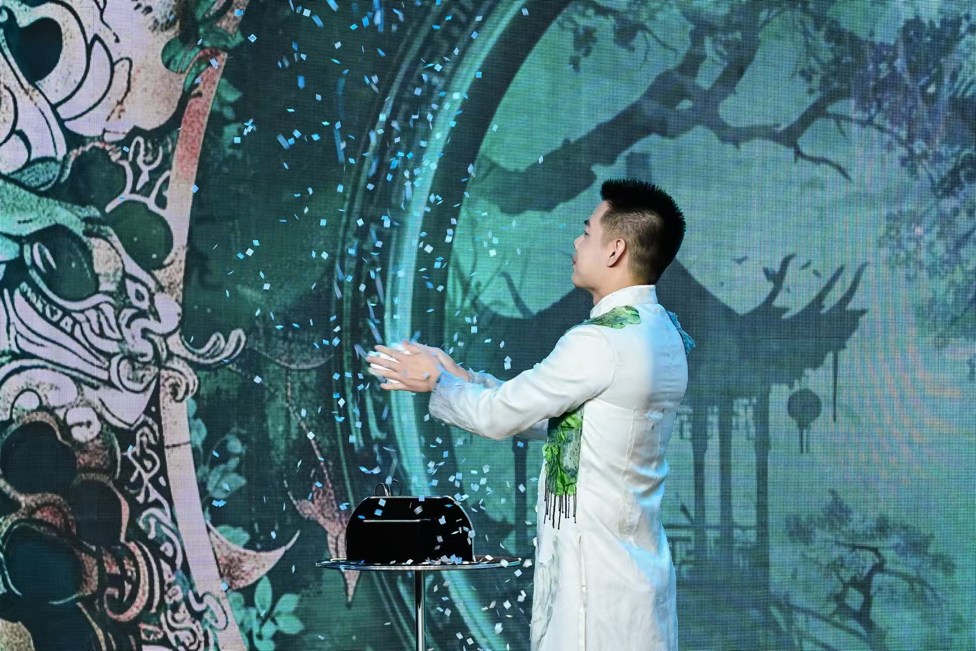 活动融合文艺演出、非遗体验等丰富内容,充分展现了中华优秀文化的独特魅力。舞蹈《踏春行》以灵动舞姿传递春之讯息;革胡演奏《冬至音诗·河声入弦》用创新民族乐音勾勒自然韵律;传统古彩戏法《冬藏·盼春》展现非遗魔术的奇妙魅力。