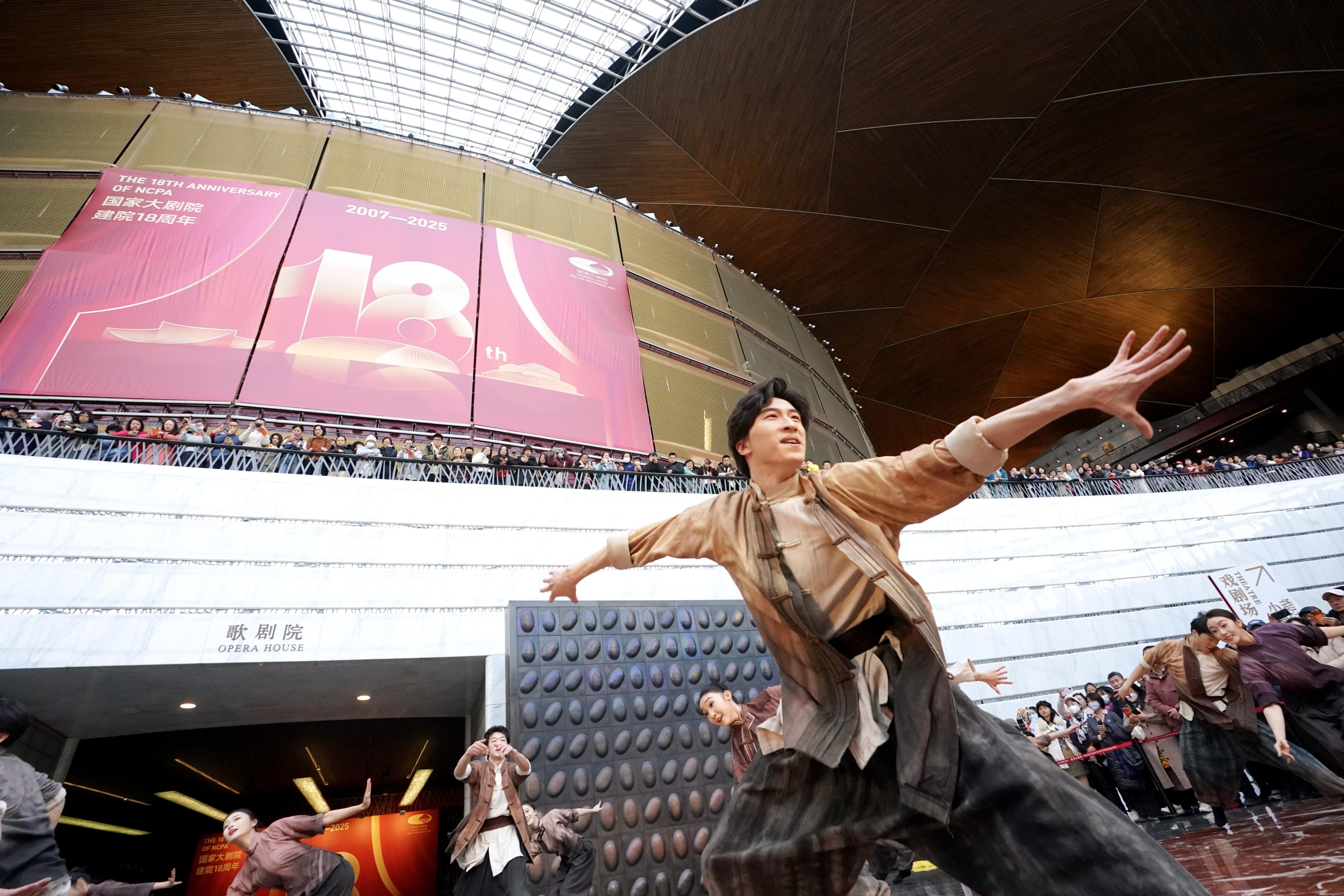 今天上午9点,伴着大鼓“迎宾十八响”,国家大剧院建院18周年公众开放日艺术节正式拉开序幕。人潮沿着北水下走廊步入这座艺术殿堂,记录着精彩演出瞬间的彩色垂幔轻盈拂动,地面上2007至2025的数字一路向前,象征国家大剧院已经走过的18载岁月。从上午到夜晚,不断线的演出和活动让艺术与观众随时相遇。