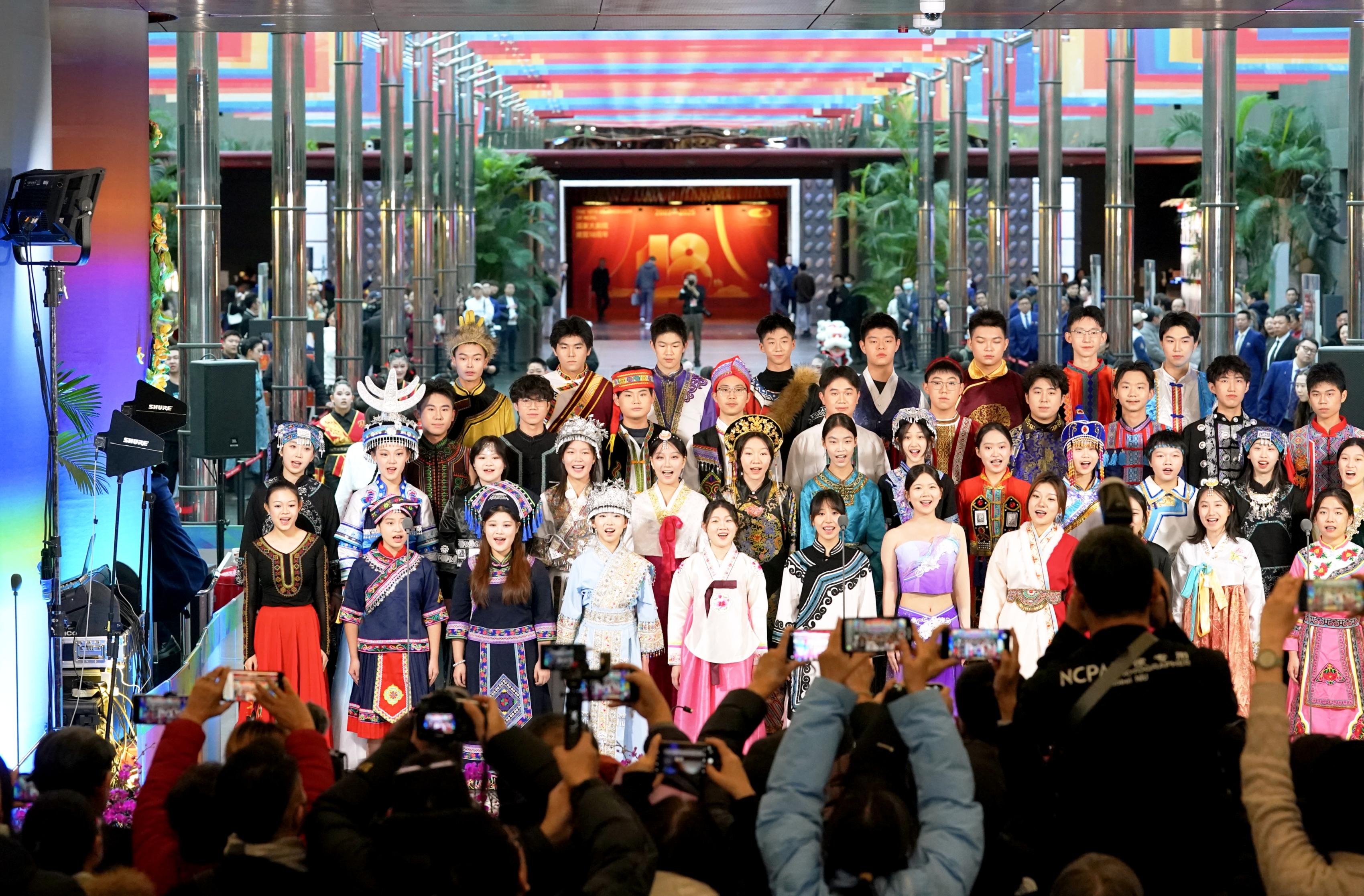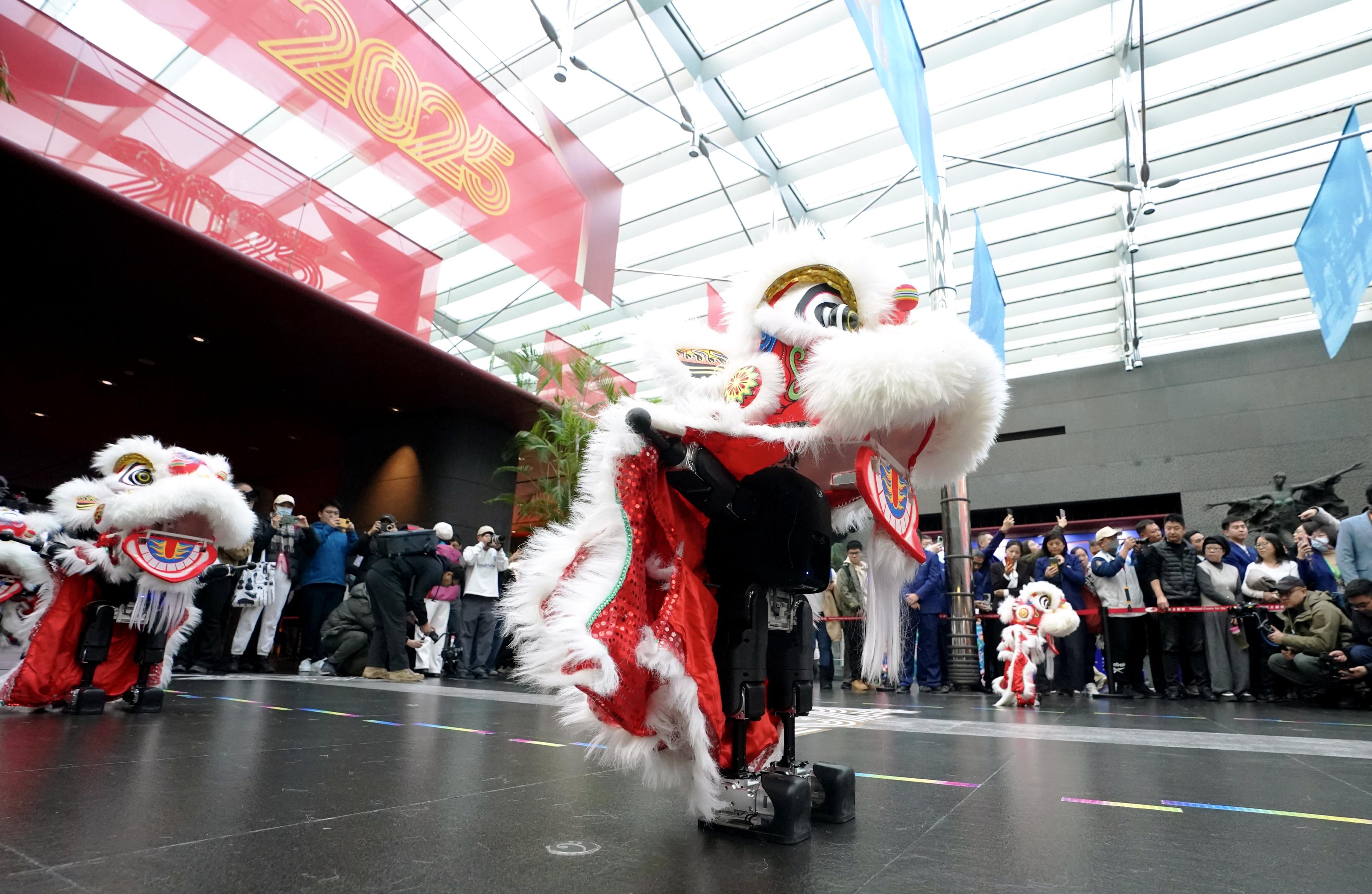 北水下廊道,少年行进管乐团和高擎机电机器人带来的“龙韵”与机器人“舞狮”表演,青年与未来携手,激昂向上的氛围吸引观众驻足观看。
