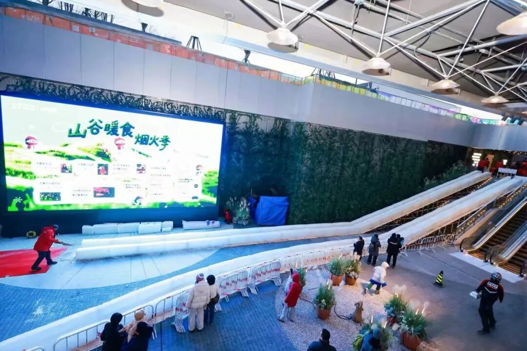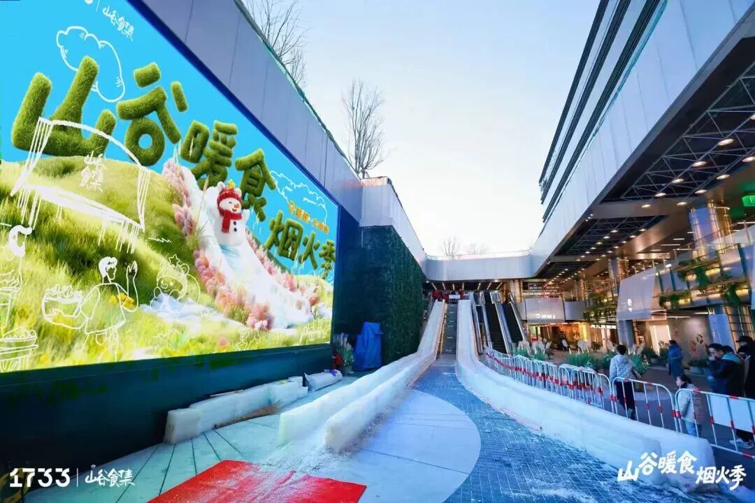 冰滑梯所在的1733山谷食集以“自然生态+街店游逛”的创新模式为市民打造了一个集美食、社交与自然体验于一体的全新空间,这里既有木质材料与绿植的相得益彰,也有美食市集与文化活动的迭奏。