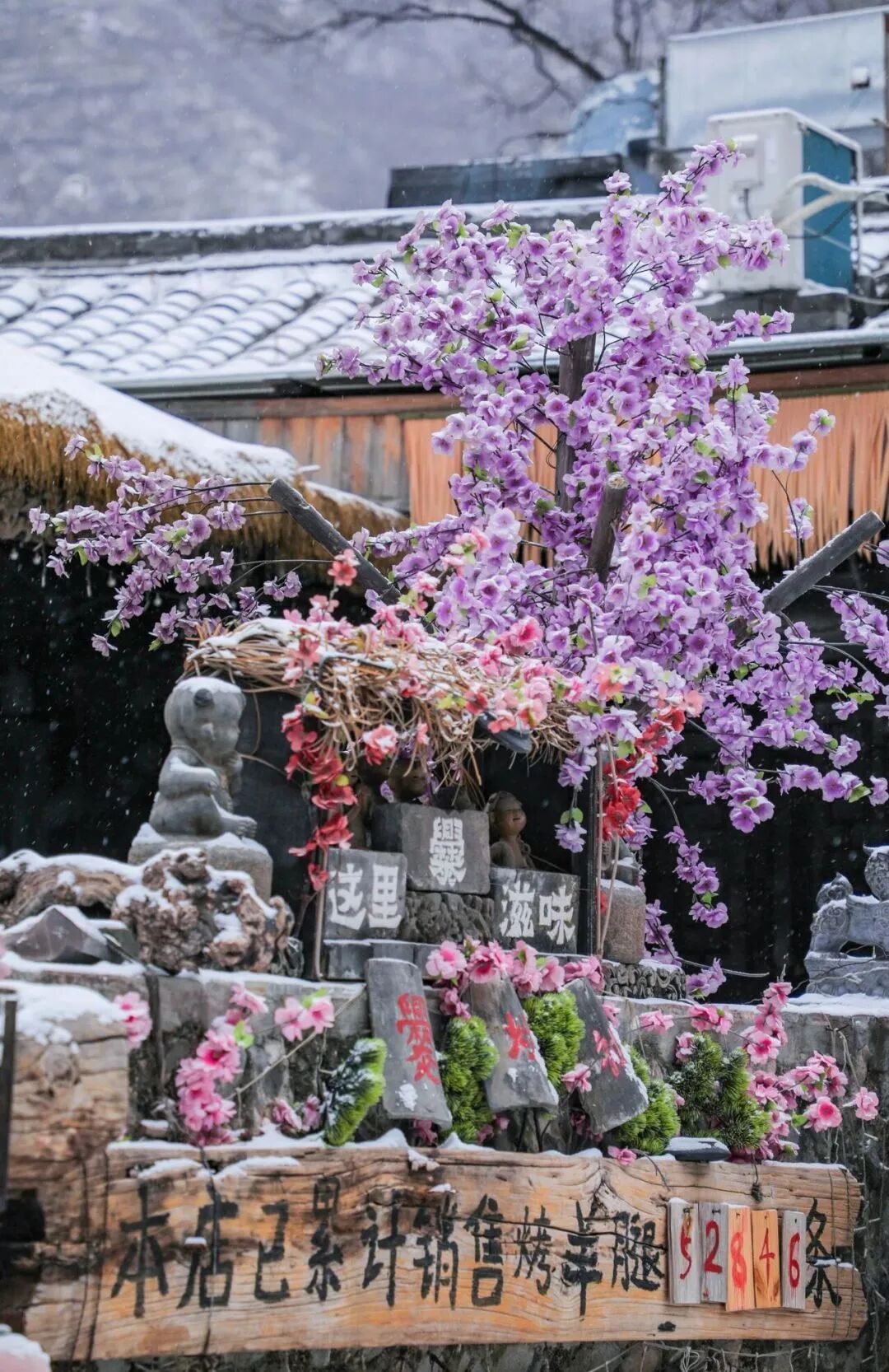 在清水镇,不只有冰雪狂欢,还有一家老牌农家美食——百花人家(清水田园店),店内饰有石磨、水车、饮马槽等,宛如来到了民俗博物馆。