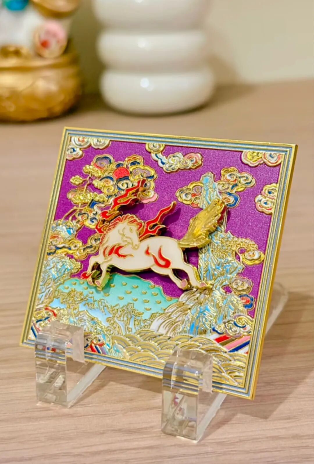 白塔寺管理处上新了一款“妙应风马”摆件冰箱贴,将马形象与白塔元素巧妙相融,白马凌云飞驰,焰光流转,纹饰间融入白塔印记,为生活增添文化雅趣。
