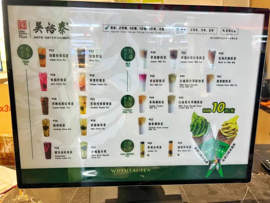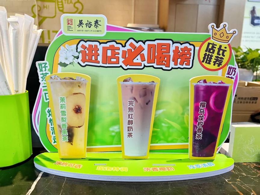 这份老少皆宜的受欢迎度,藏在“守正创新”的经营哲学里。茉莉奶茶选用多次窨制的经典茉莉花茶,严格把控茶汤与奶的配比,实现“茶奶相融、互不掩盖”;桂圆红枣奶茶先将食材热泡出味再调和牛奶,锁住天然香甜。在此基础上,吴裕泰创新采用低糖、微糖默认设置,并提供无糖选项,拒绝人工色素与香精,贴合健康消费理念。