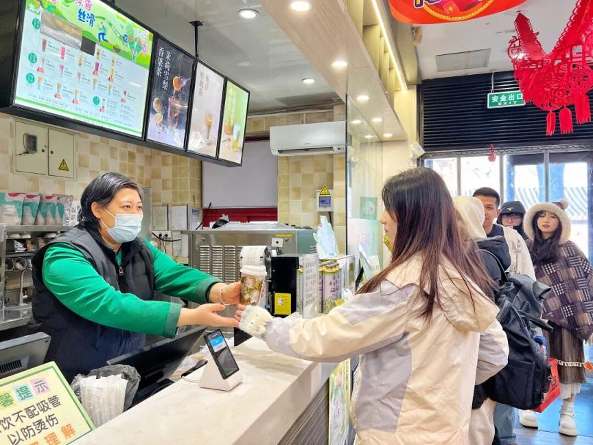 门店还特别推出“隆福葫芦茶”,将茶饮装入葫芦形瓶中,既好看又好提,迅速成为打卡热点。经营中的暖心细节则更添温度,自助茶饮机向环卫工人、外卖小哥免费开放,随时提供热水,冬日的暖意不仅来自杯中的茶饮,更源于细微处的人文关怀。