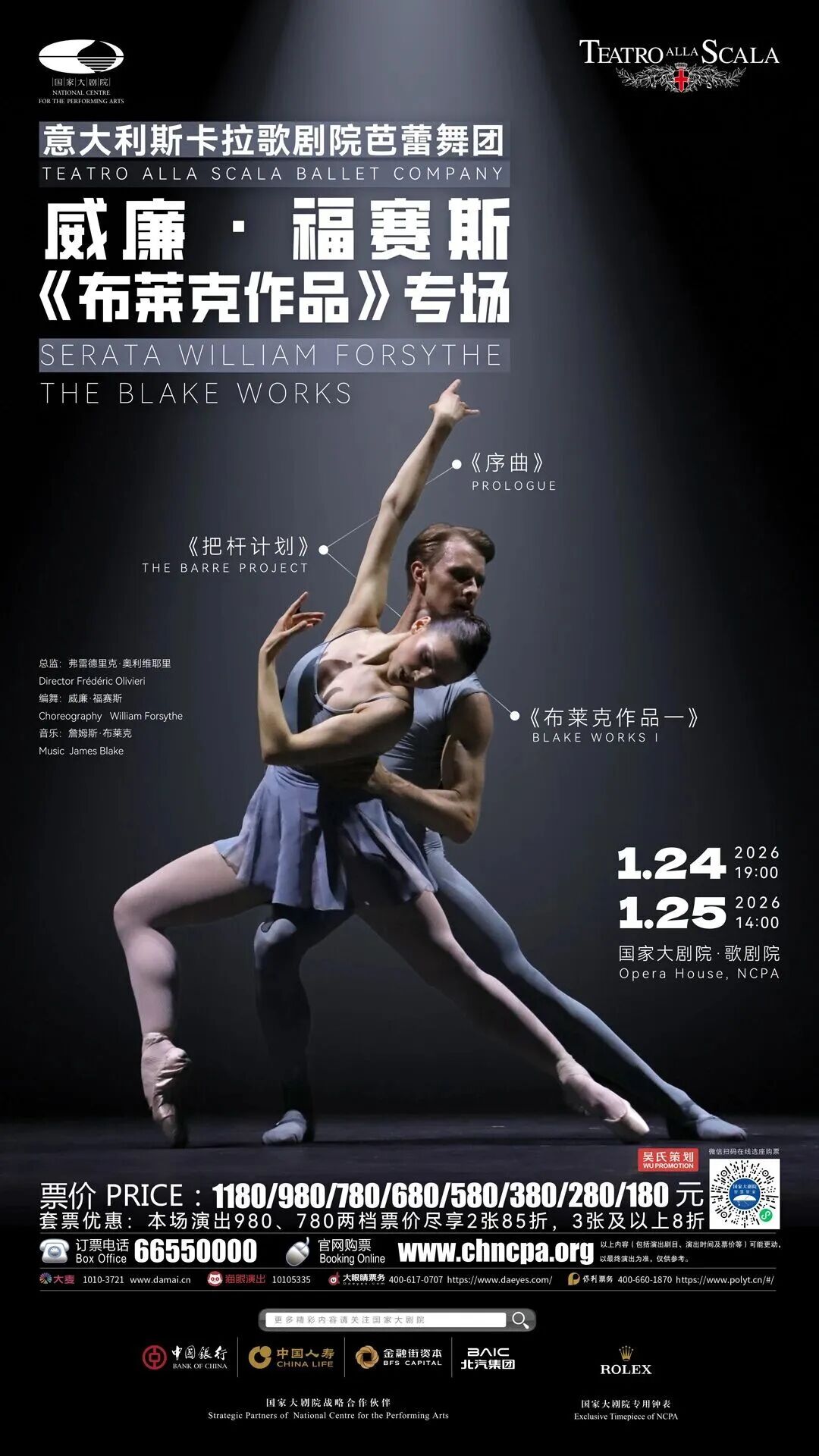 当古典芭蕾的身体秩序被彻底解构,当舞台被切割成光、线与速度交织的能量场,威廉·福赛斯的《布莱克作品》以其无可替代的当代气质,成为21世纪最具影响力的芭蕾创作之一。1月24日至25日,意大利斯卡拉歌剧院芭蕾舞团将携这部标志性作品亮相舞台,以一场高度密集、具有观赏冲击力的专场演出,邀请观众走入当代芭蕾最前沿的世界。