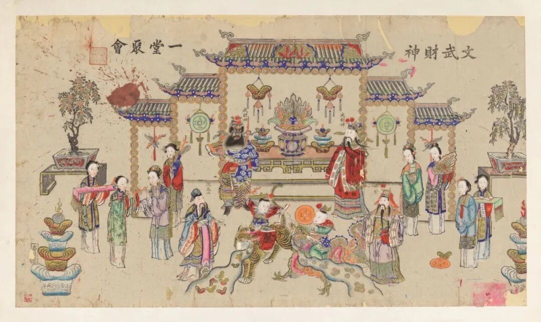 文武财神一堂聚会 天津杨柳青 佚名 年画