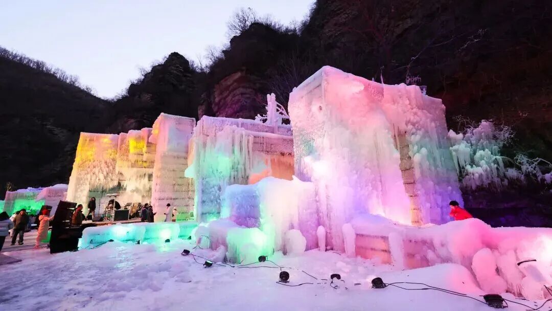 饱餐之后,可以前往京东大峡谷,打卡与子・山谷冰瀑艺术季,邂逅冬日限定的冰雪美学盛宴。