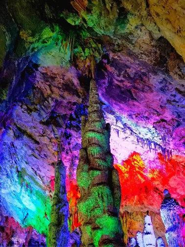 大溶洞洞体岩石奇特,溶洞洞壁有的似片片浮云,有的如座座莲花,有的状如簇簇巨蘑,还有的似西风卷帘,晶莹剔透,绚丽多姿,光影交织的奇幻世界等你探索。