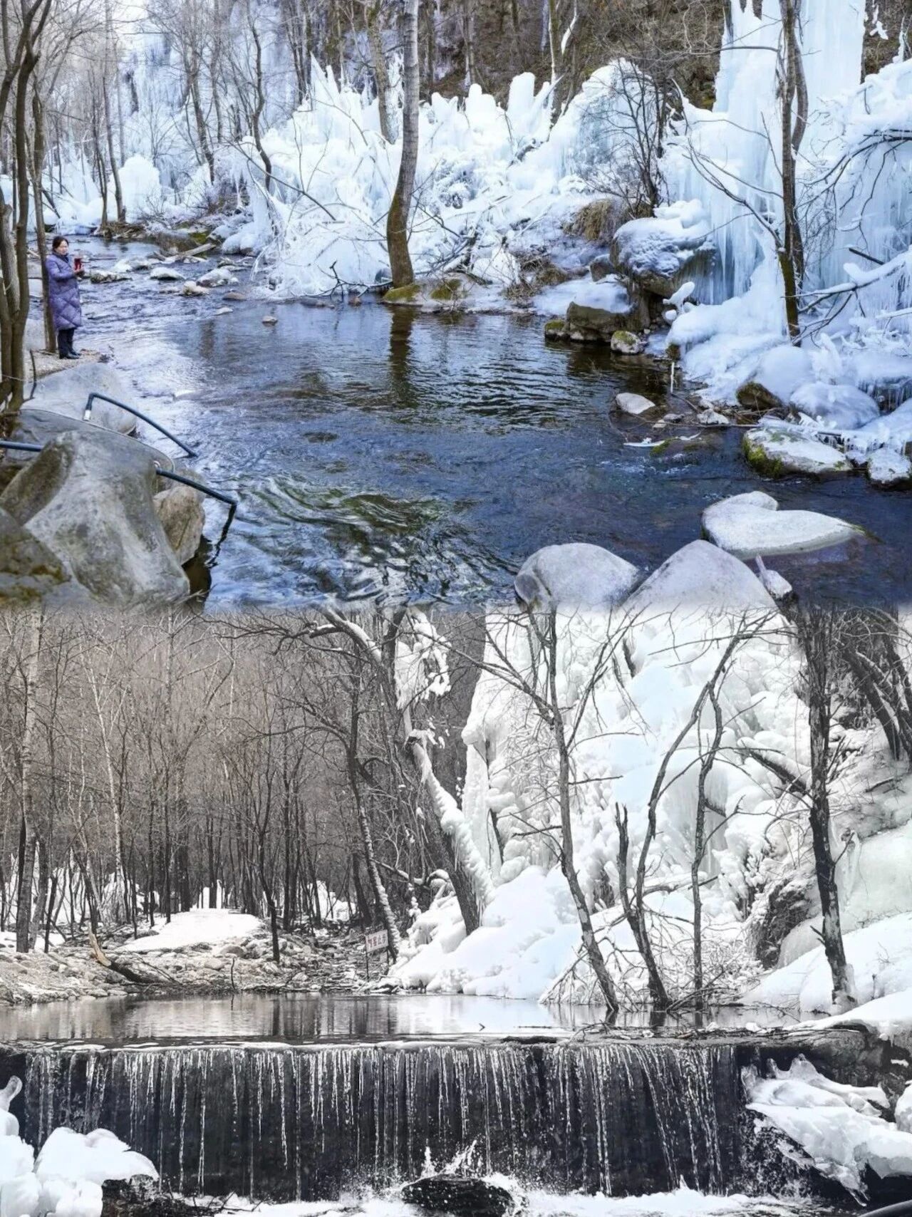 🏮图13:玉渡山依托天然溪流打造5000米冰挂、冰瀑奇观,形成“一山两景”的独特景致,一半流水潺潺,一半冰封如玉。游客可徒步赏景、拍照打卡,还能伴着泉声享受疗愈时光。(图/北京玉渡山风景区)