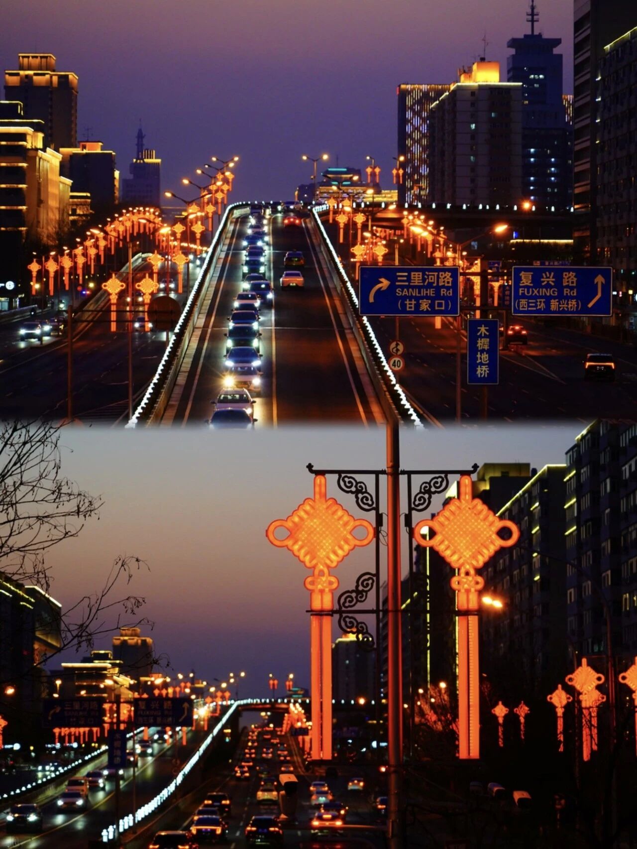 🏮图12:随着春节的临近,长安街两侧已安装上中国结,夜幕降临后,灯光璀璨,尽享浓浓年味。(图/Sipa图库)