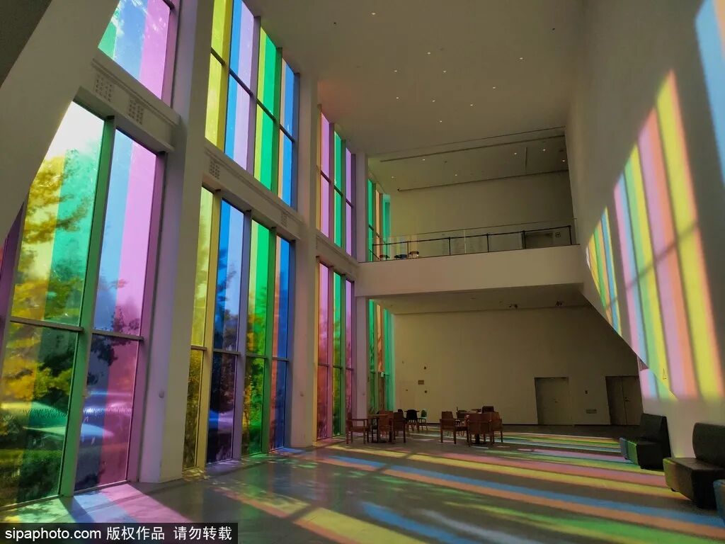 北京民生现代美术馆位于朝阳区,前身是一座80年代的工业建筑,由国际著名设计师朱锫设计改造,将工业建筑的硬核感与现代艺术完美结合,连接楼层的纯白楼梯,梦幻的彩虹落地窗,吸引了众多游人前来打卡。