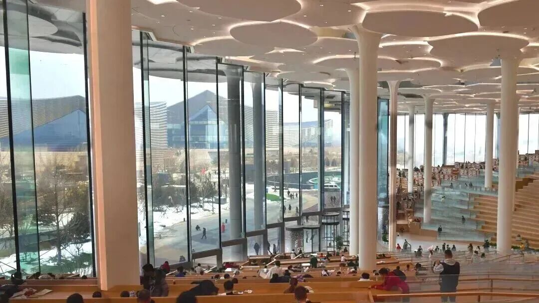 北京城市图书馆以数字文明与生态美学交融的姿态,重新定义了现代化图书馆的无限可能,走进图书馆内部可以看见144棵“银杏树”撑起的屋顶宛若森林伞盖,“银杏叶”般的树叶间隙透出的光影变幻,给人一种“临山间于树下勤阅览”之境。