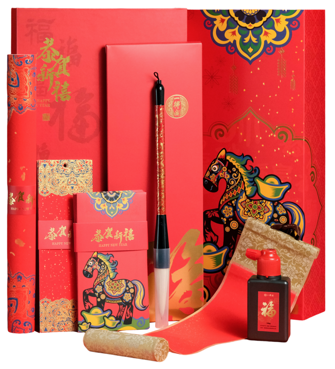种草语录:马到功成,福运绵长!礼盒设计采用“马踏元宝”造型,内含笔墨、春联红包等全套节庆用具,既实用又适合赠礼,还具备满满的收藏价值!
