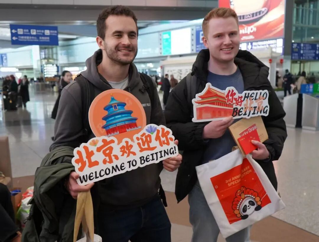 “真没想到!刚在伦敦希思罗机场挥手告别,转眼就在北京首都机场收获了这样一份惊喜!”2月16日下午,搭乘国航CA938航班抵京的英国小伙凯兰·米汉兴奋地说。他和妻子、朋友刚走出首都机场,就收到了北京市文化和旅游局精心准备的“新春大礼包”。这场从伦敦到北京的新春礼遇,正是北京市文化和旅游局联合中国驻伦敦旅游办事处等机构共同策划的入境旅游“送迎联动”活动——2月15日晚在伦敦温馨送机,2月16日农历除夕当天在北京送上诚挚的新春祝福,让外国游客一路都能感受到中国年的温暖与诚意。