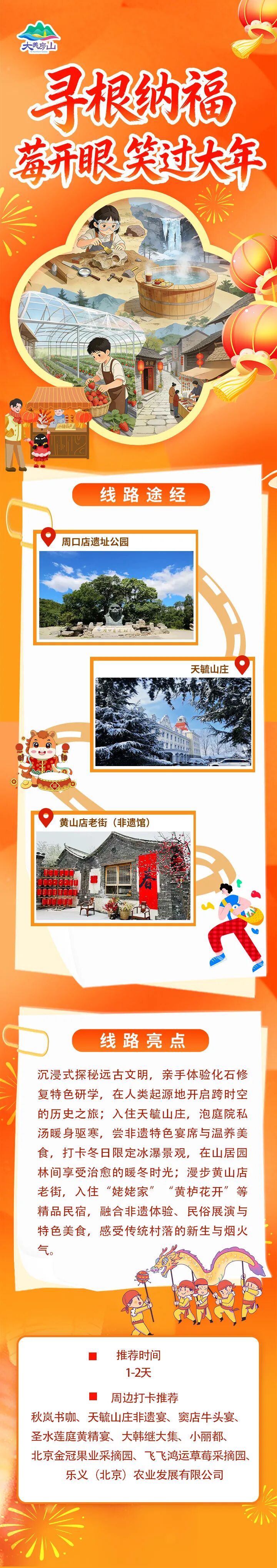 新春佳节之际,房山区文化和旅游局以“来房山过大年”为主题,精心策划3条精品旅游线路并推出“一码惠游”便捷服务。