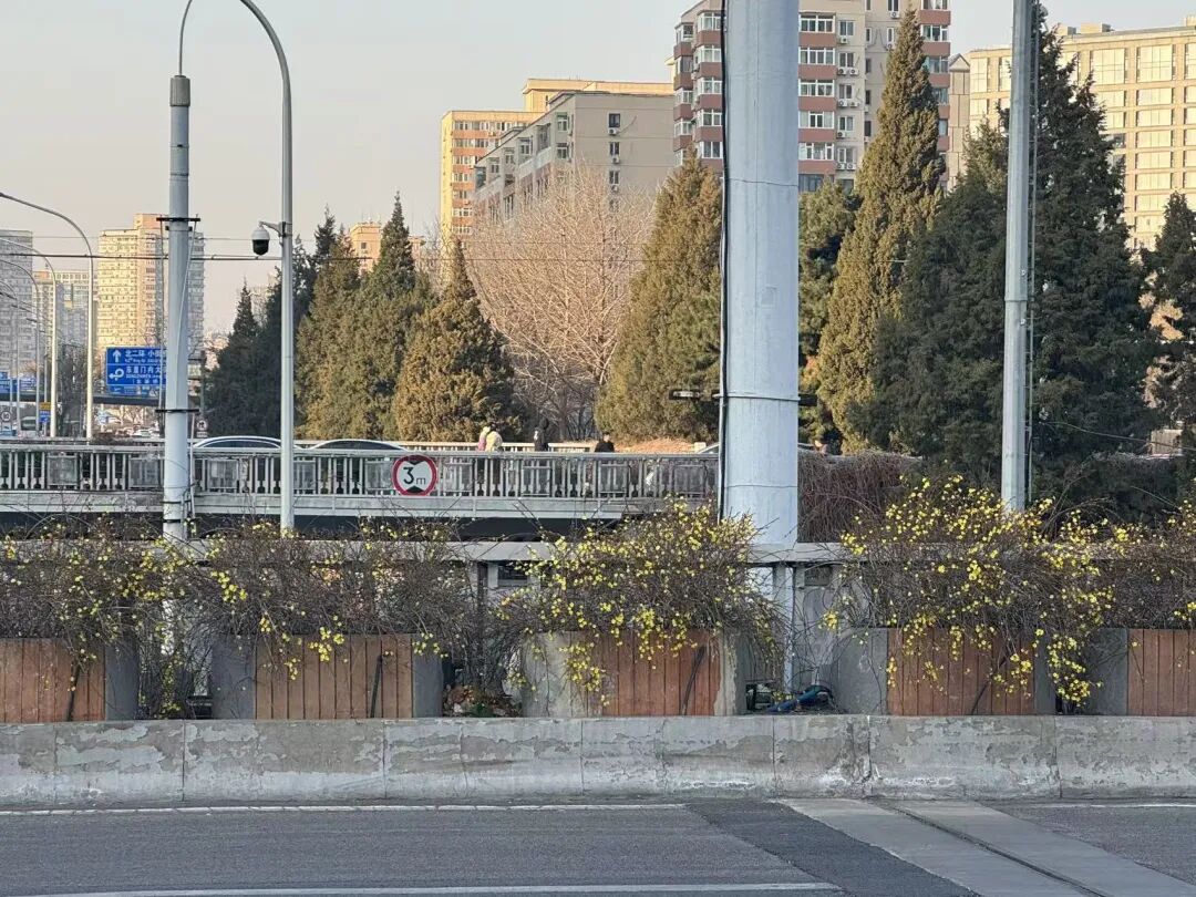 昨天下午,在东直门桥附近的二环路辅路看到,沿线的迎春花已经盛放。一簇簇金黄的小花缀满枝条,沿着道路绵延舒展,宛如一条金色花带,在阳光下格外耀眼。“冬日的萧瑟一下子被这些金黄的小花驱散了,春节返京复工第一天就遇见这么美的春色,心里特别温暖舒畅。”市民刘女士说。