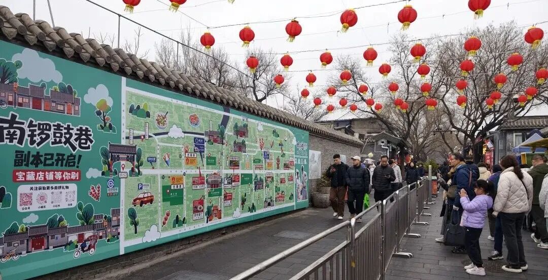 中国人常言“没过十五都是年”。春节假期期间,东城区特色商业街南锣鼓巷实现了客流量与销售额的双增长。这份热度延续到了春节假期过后,南锣鼓巷依旧热闹非凡,马年元素随处可见,新春的喜庆氛围拉满。持续至3月15日的“韵东城·潮南锣”非遗国潮季活动,让非遗国潮与胡同风情碰撞融合,吸引着八方游客前来打卡。