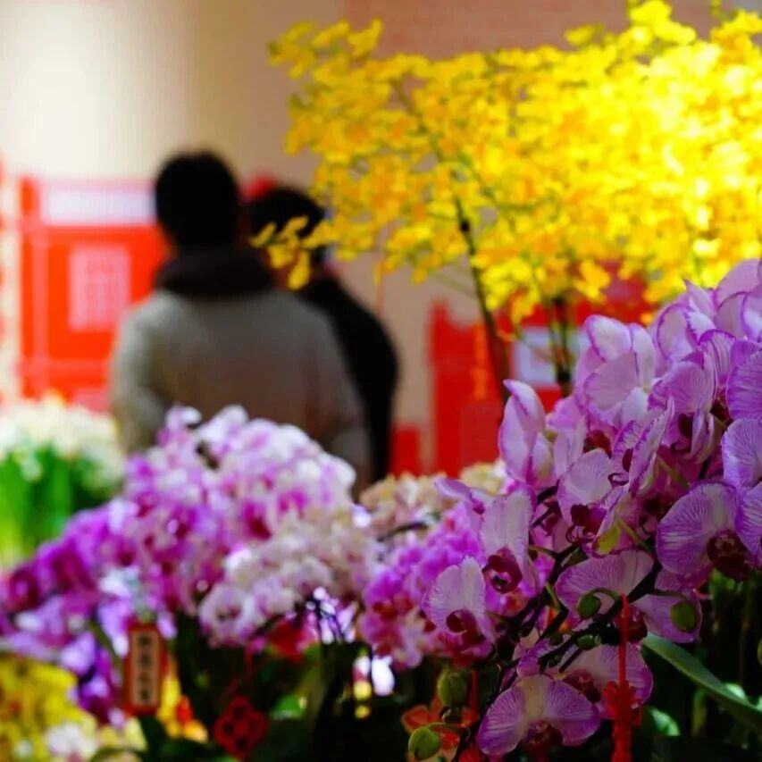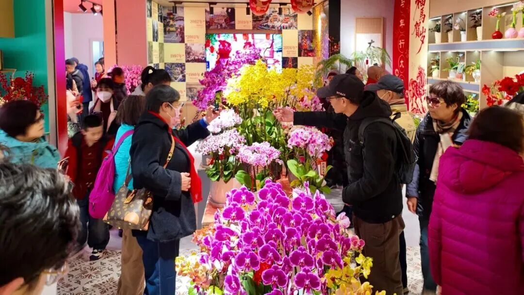 广府年花精品展不同于室外花街的热闹铺陈,碧海楼内的布置更显精致典雅,年桔、桃花、蝴蝶兰等特色年花,不仅承载着美好寓意更展现出广州花卉产业的精湛技艺。
