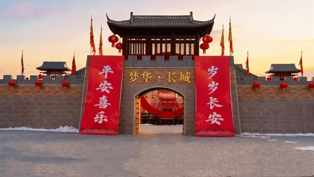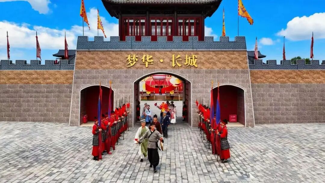 梦华长城剧场位于延庆区世园公园内,总面积3.3万平方米,设置可容纳1100人的坐席。步入剧场,标志性的“城门”景观即刻将游客带入浓厚的大明历史氛围;入门正中点将台气势恢宏,两侧街道对称布局14个主题摊位,后方错落设置6个互动帐篷,为演员与游客的实时互动搭建趣味场景;超大纵向舞台配备专业音响与灯光设备,为驻场大戏《梦华·长城》打造极具视觉震撼的演出载体,让沉浸式的历史体验触手可及。