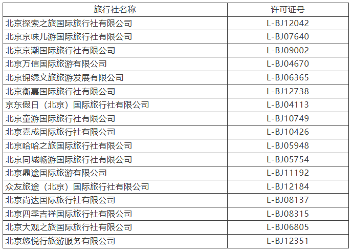 根据我市旅行社涉诉情况统计,现公示2026年3月9日至3月15日,北京市投诉量排名前十旅行社名单如下: