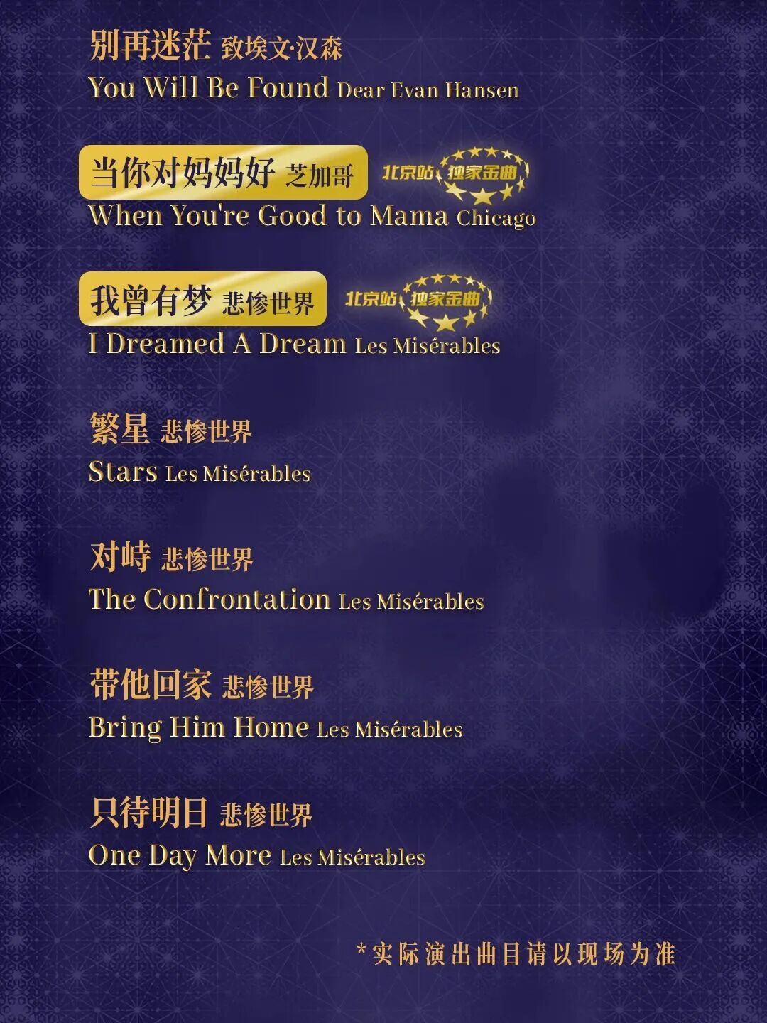 *实际演出曲目及顺序以现场为准